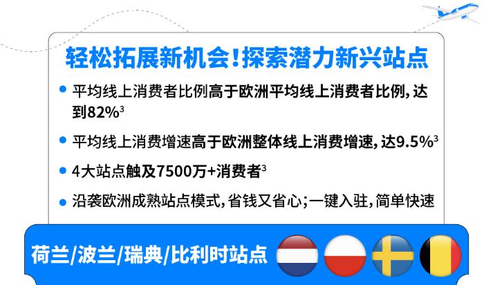 除欧洲现有9大站点外,通过【欧洲出口计划】可拓展至暂无亚马逊站点的30+欧洲国家/地区