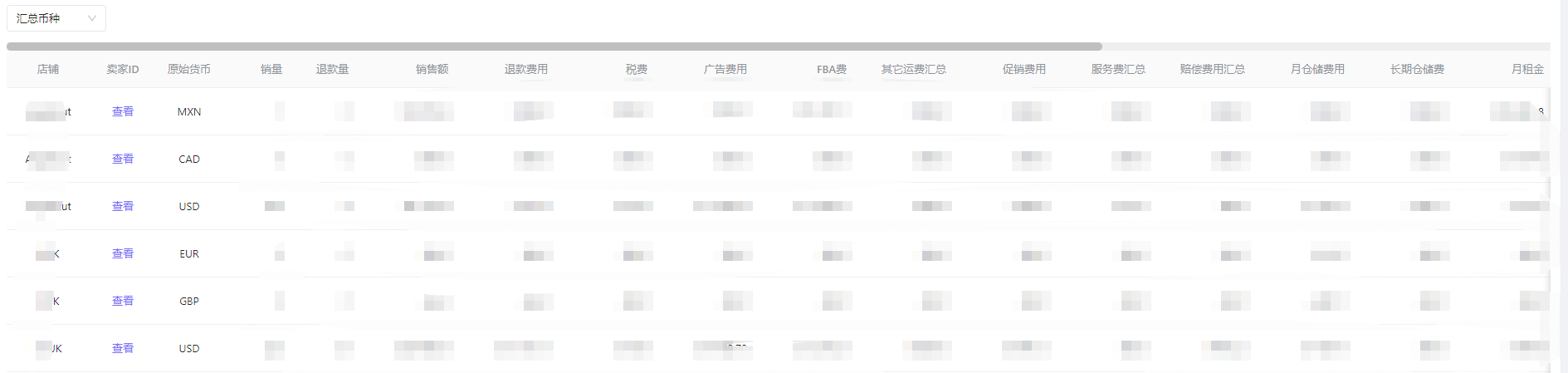如果绑定多个店铺的话,还可以根据不同店铺,不同站点进行具体成本及利润数据的查看: