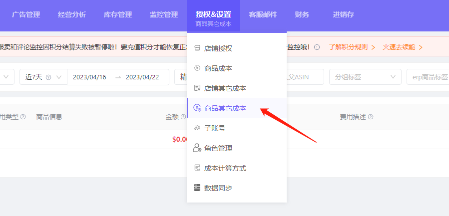 固定成本算法:通过商品成本功能,手动添加对应日期的订单商品成本。