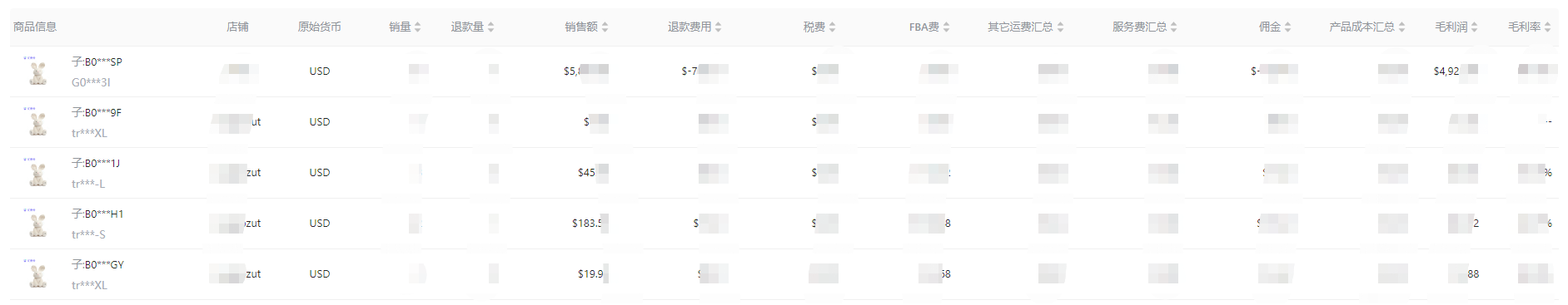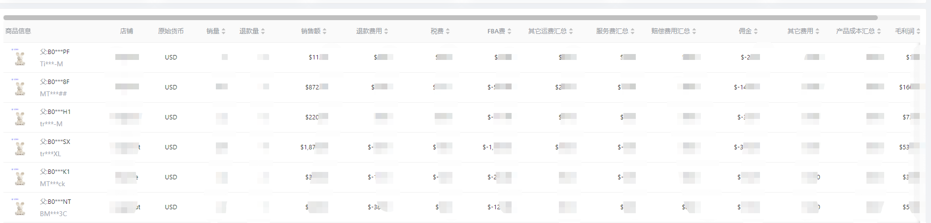 然后可以从:店铺维度,sku维度,asin维度,父体维度来查看利润情况: