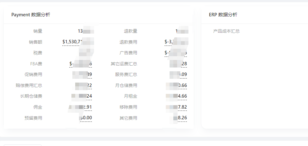 但是这种核算方式一种是人工统计容易出错,另一方面数据看起来比较乱不能一目了然的看到各种费用占比,需要使用公式统计出来。 所以目前基本使用ERP帮助店铺分析利润情况。