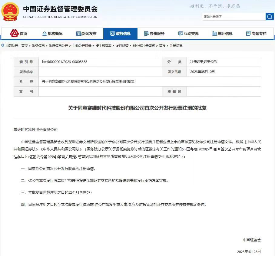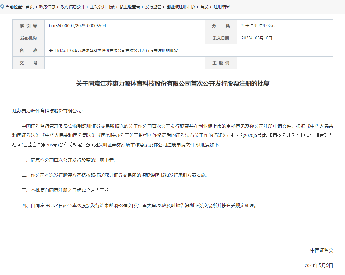 5月10日,据中国证券监督管理委员会发布的公告显示,江苏康力源和深圳赛维时代,双双通过了IPO注册。