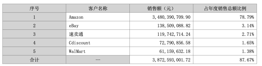 2022年,易佰网络在亚马逊实现销售的网店数量为777个,营收34.80亿元,占公司收入比重78.79%。排名第二到第五的平台分别是,eBay,速卖通,Cdiscount和沃尔玛,合计占营收的总份额不到10%。