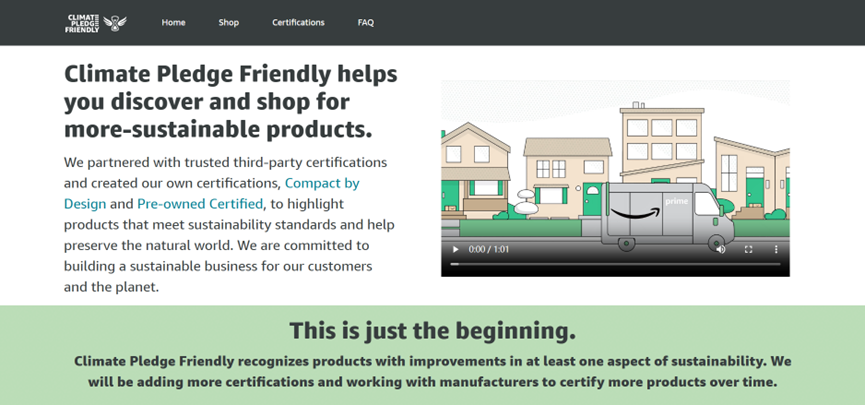 气候友好承诺项目源于2019年亚马逊联合Global Optimism共同推出的《气候宣言》亚马逊为帮助终端买家轻松发现和购买更具可持续性的产品,不断消除碳排放并抵消任何剩余的碳排放以实现其目标,实现可持续性产品的一项认证计划,简称气候友好(Climate Pledge Friendly)。