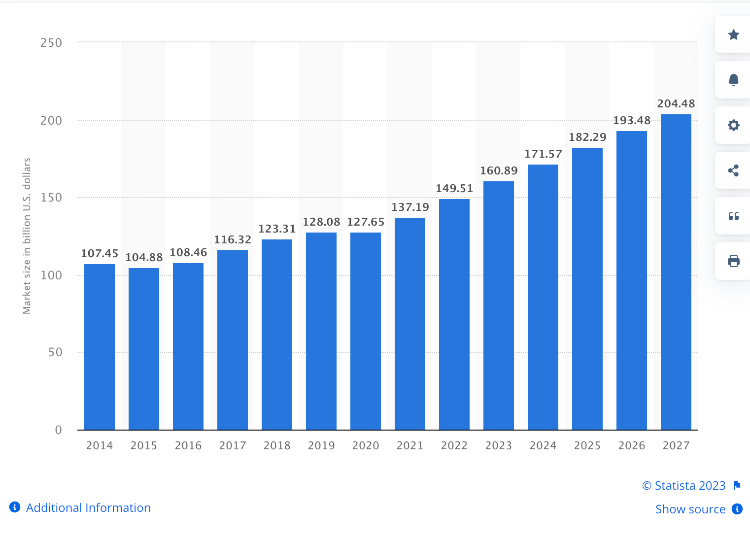 据Statista数据预测,到2027年,全球运动用品在线销售的年复合增长率将达到6.86%,到那时市场规模将增长到19万亿美元。