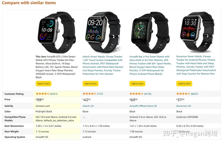 亚马逊根据产品相似性和买家购物习惯自动抓取推荐,把高度相似的产品进行对比