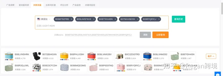 然后输入对标竞品 asin,得到竞品的关联流量数据: