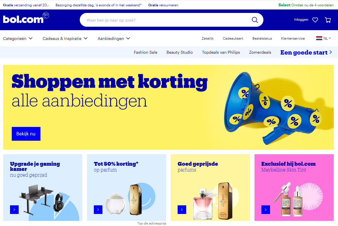 Bol.com 是荷兰最大的市场平台,在荷兰的表现优于亚马逊,拥有超过 800 万客户和 1.5 每日访客。他们的品牌对卖家来说是有利的,因为他们可以利用他们的品牌知名度。