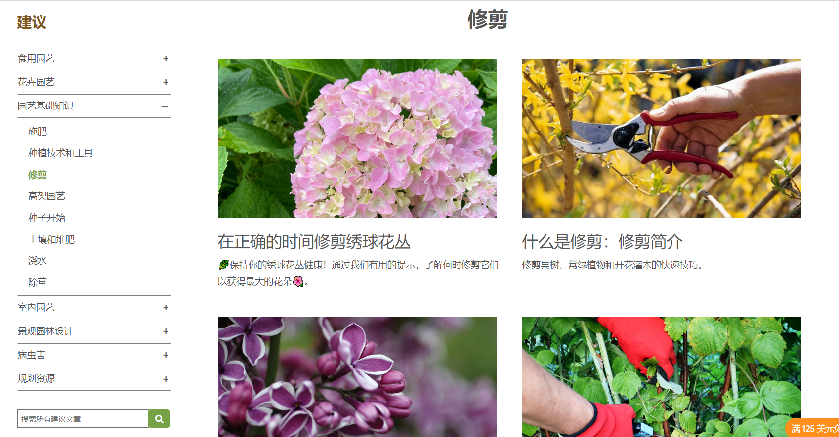 Gardener's Supply的独立站有一个类似于博客的“Advice”版块,其中包括种植、施肥、浇水、除草等园艺基础知识,以及园艺、园林景观设计、病虫害防治等知识。