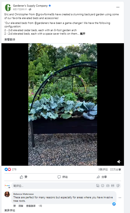 同时,Gardener's Supply在社媒平台和一些关于园艺的在线论坛也非常活跃。