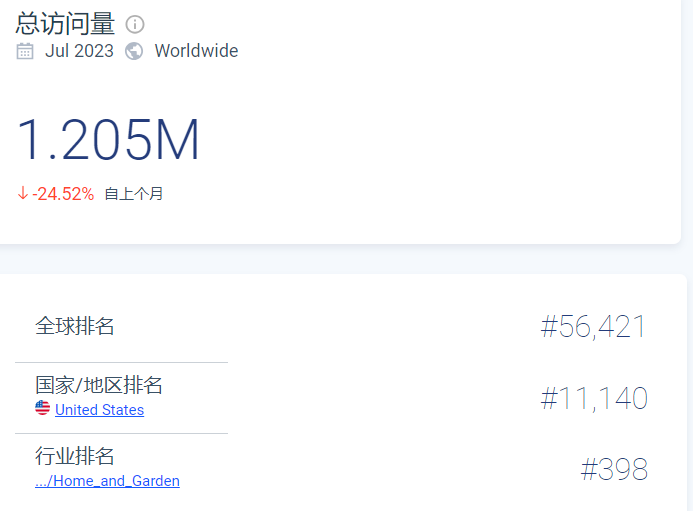 通过Similarweb可以发现,该网站的自然搜索流量占比近47%,7月访问量为120万左右。