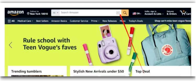 “ 亚马逊新增以图搜物功能 亚马逊的搜索框最近新增了一个新功能——以图搜物。 用户可以直接拍摄或者上传一张产品的照片,然后亚马逊系统就会帮用户找到相似或者相同的产品。