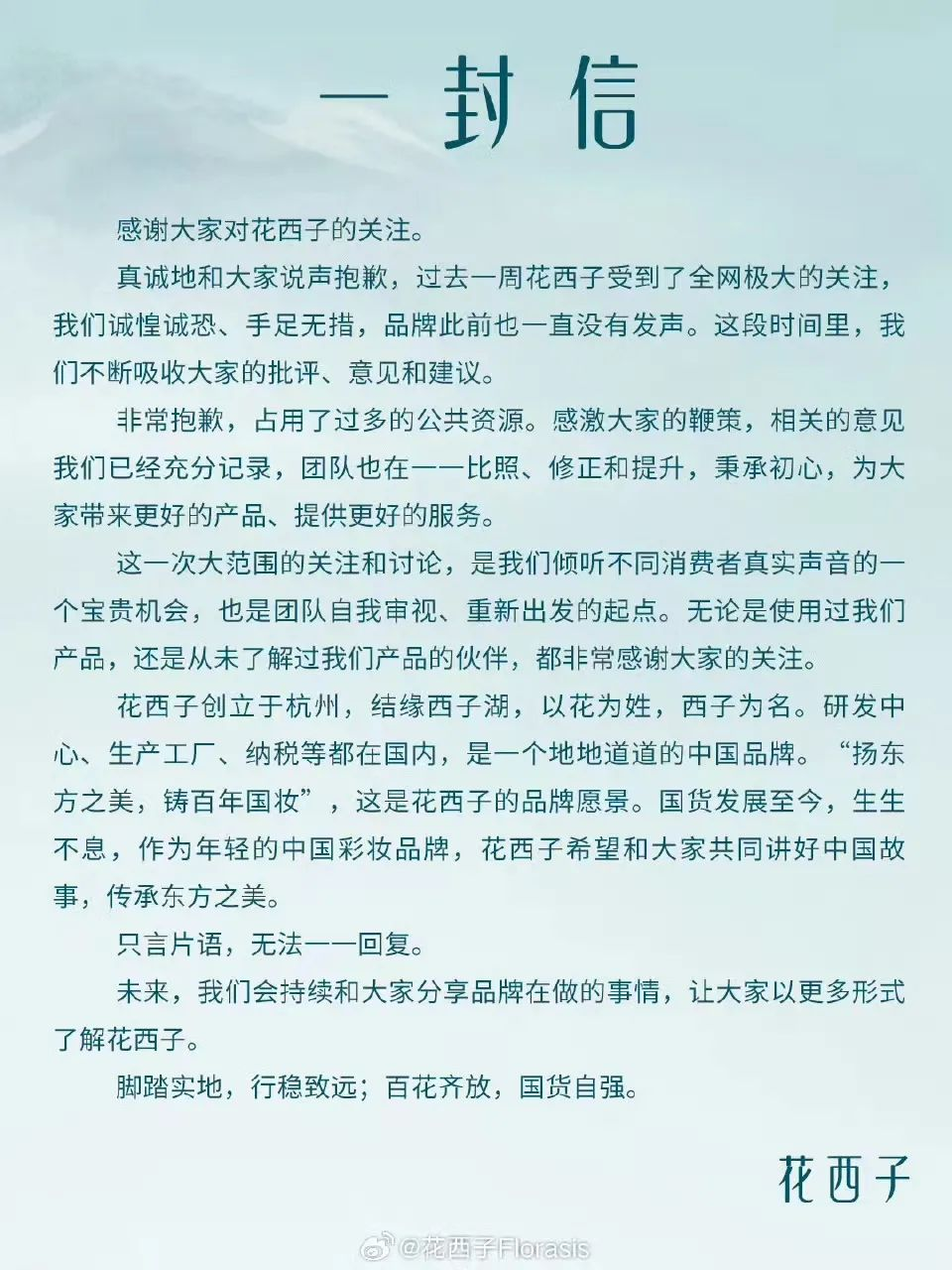 国货彩妆品牌花西子仍未走出近期的舆论风波李佳琦不当言论发酵多日之后此前一直保持静默的花西子终于发声但花西子长信道歉引发热议关于花西子仍然有多个话题挂上热搜