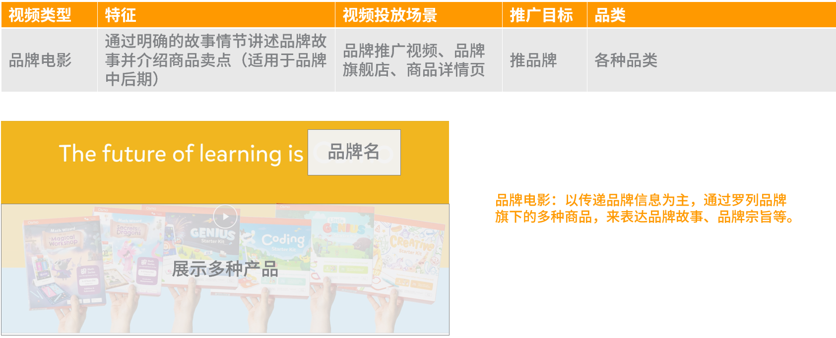 同一个视频可以在多个场景下使用,在多场景下帮助消费者了解商品,但不同的投放场景所需的视频精细度不完全相同: