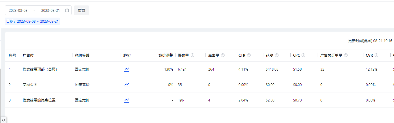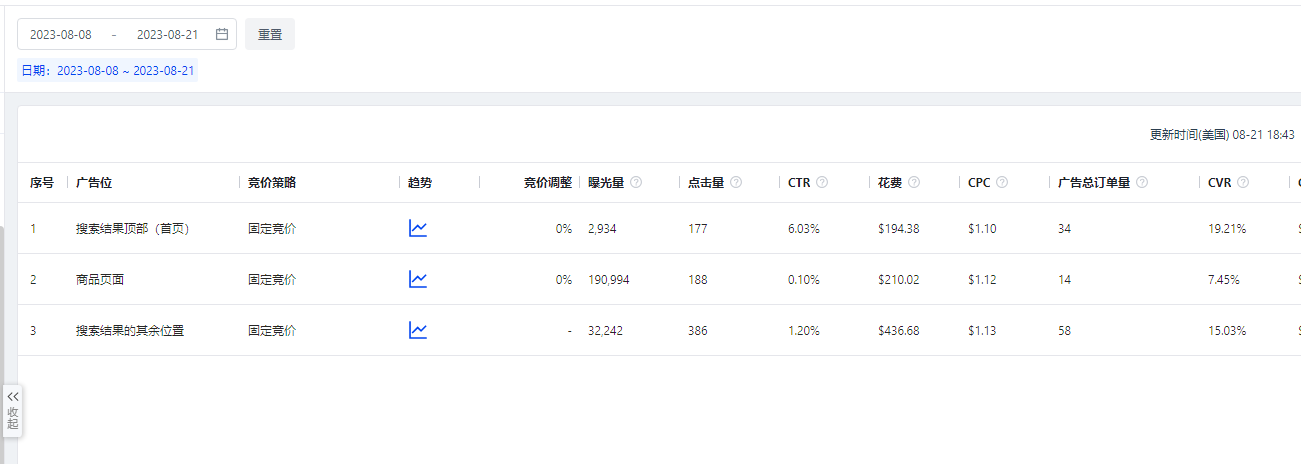 那么有老铁们会问,万一ACOS爆表怎么办?打这种模式,ACOS不会很好,我们需要重点关注CR,而不是ACOS,比如CR能够达到10%就符合需求,那么此关键词就不能看ACOS,而是看CR是否达标。