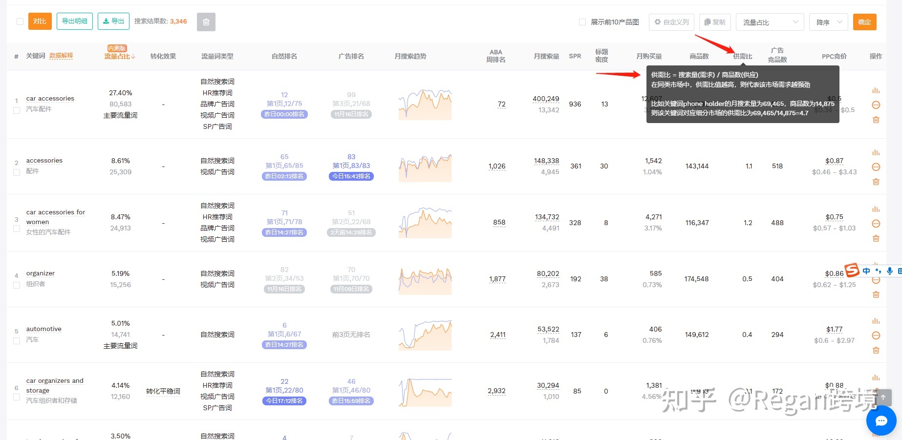 在同类市场中,供需比值越高,则代表该市场需求越强劲。所以我们在可以承受的搜索量范围内,选择尽量供需比例大的关键词: