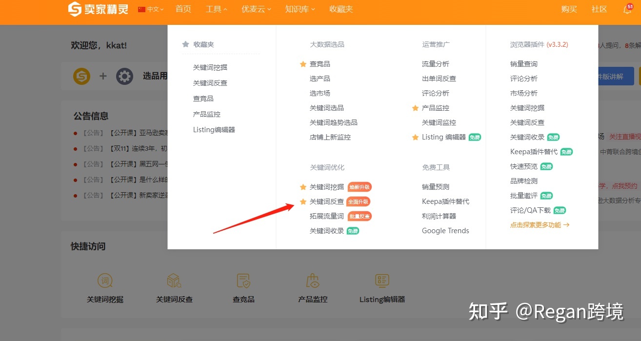 首先我是通过卖家精灵关键词反查工具,来获取关键词数据。