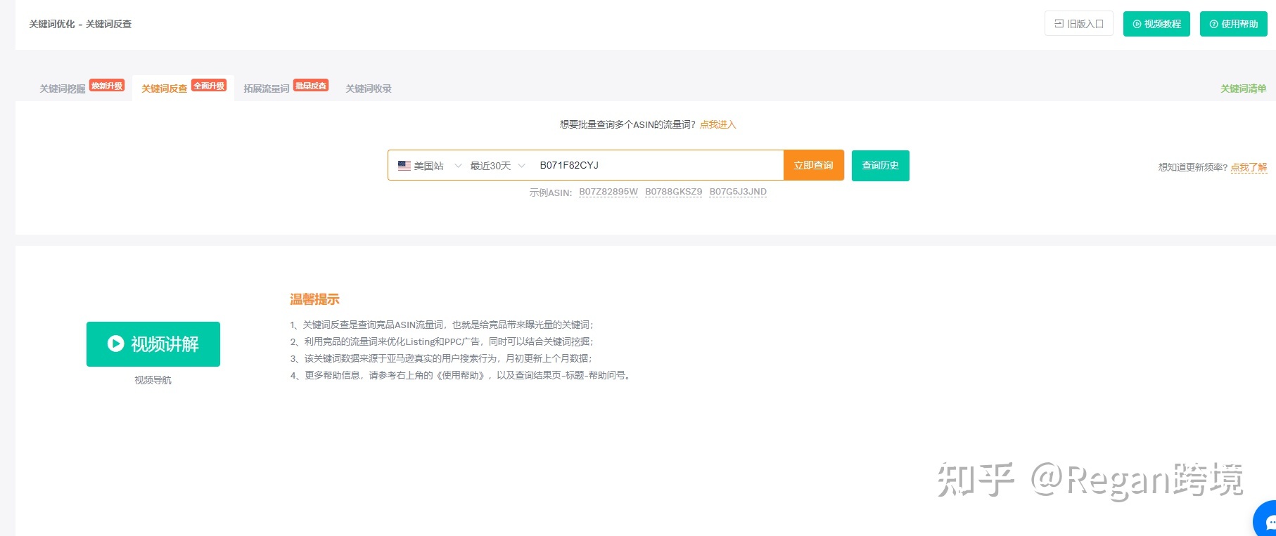 通过关键词优化-关键词反查板块,输入asin来获取竞品在亚马逊上收录的关键词: