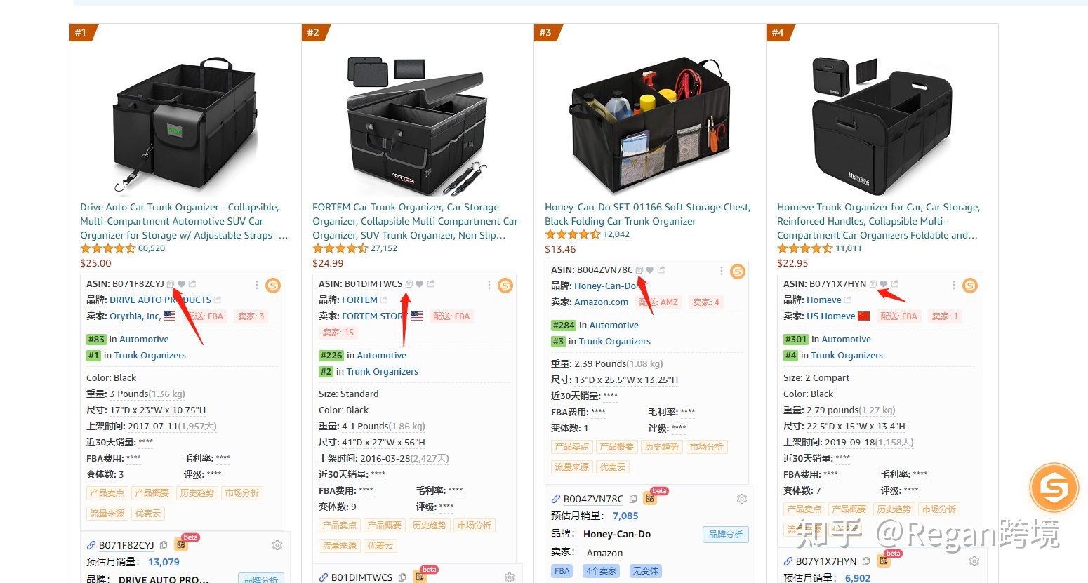 以car organizer为例,进入BSR榜单,然后找寻和我们做的产品几乎一样的高度相关竞品。
