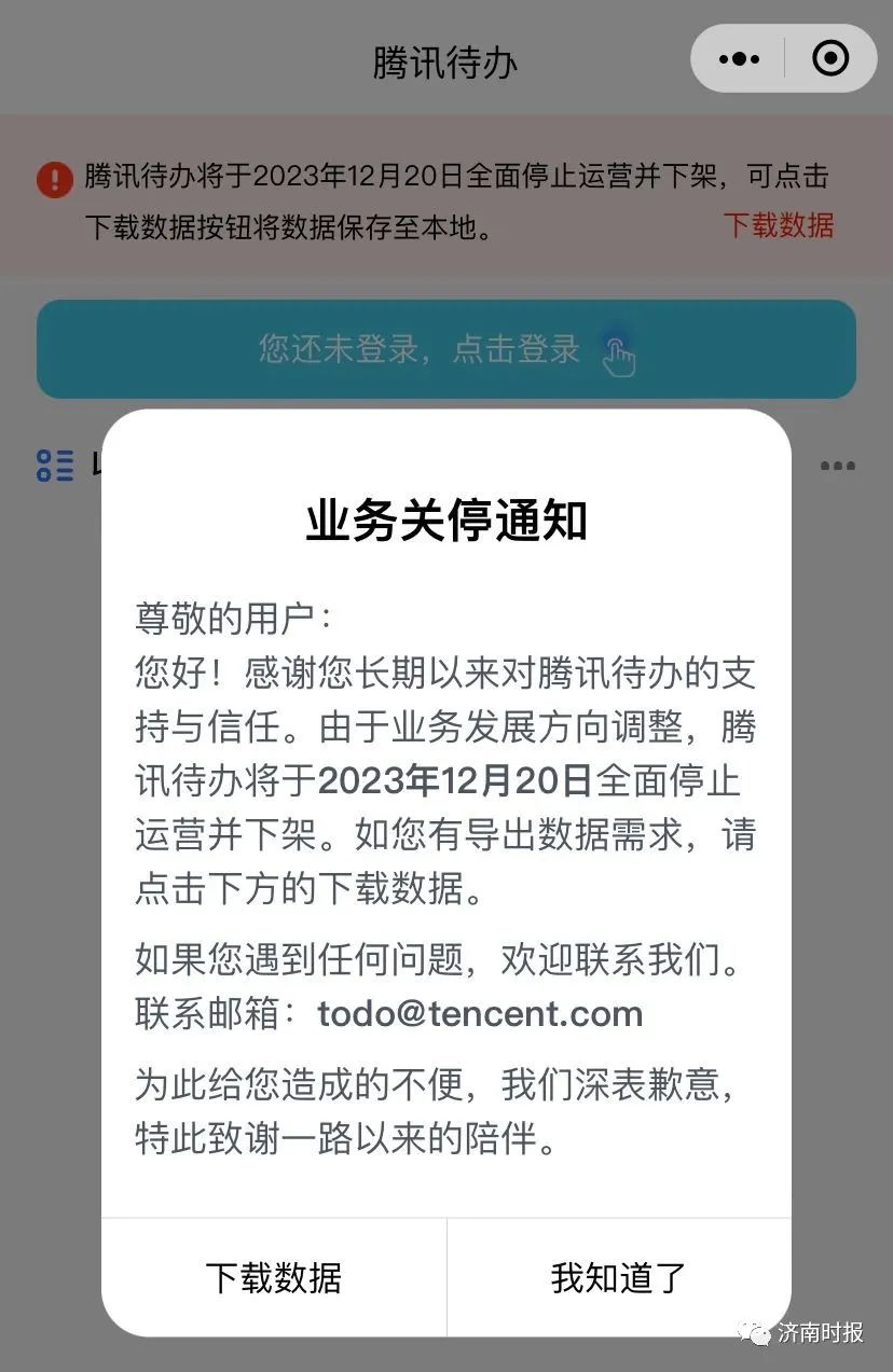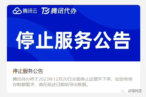 16日,腾讯旗下产品“腾讯待办”官方发布公告称,由于业务发展方向调整,将于2023年12月20日全面停止运营并下架。