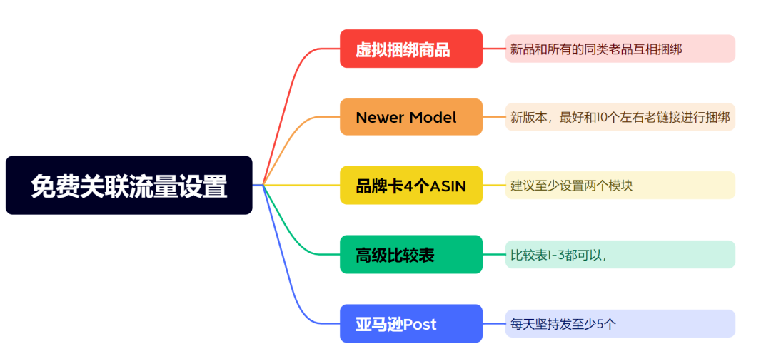 新品上架最缺的就是流量,一定要巧妙利用新品和自己老链接进行免费关联的设置。目前比较容易设置成功的免费关联流量主要是 虚拟捆绑商品、Newer Model 、品牌卡4个ASIN、高级比较表、亚马逊Post。