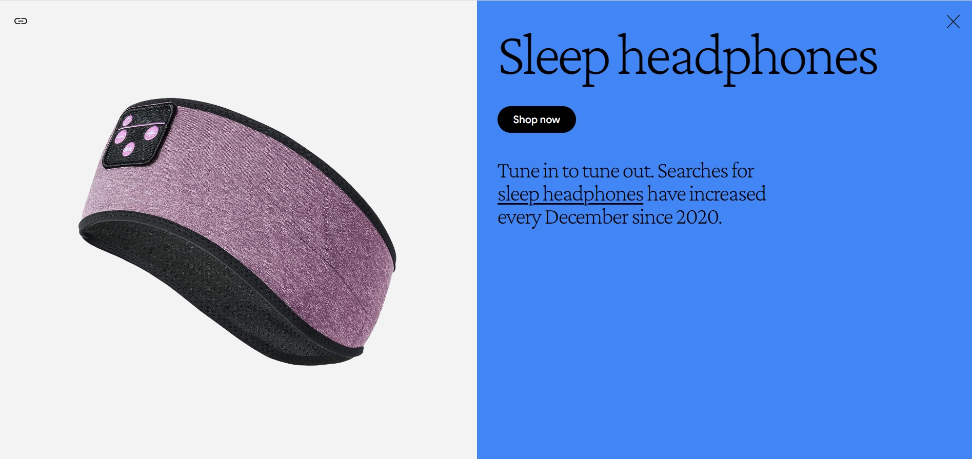 随着越来越多人备受睡眠问题困扰,许多缓解失眠症状的助眠产品热度骤增。在Google2023Top100热门搜索商品中,此类商品还包括“Aromatherapy eyemask(香薰眼罩)”、“Sleep headphones(睡眠耳机)”。