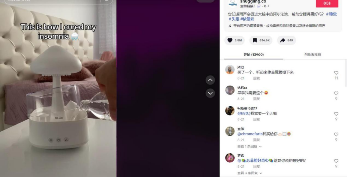 此外,在TikTok等海外社媒上,还有不少类似爆火的睡眠产品,如Shoptop曾为大家分享过的“人形助眠身体枕”、“白噪音助眠音箱类产品”等。