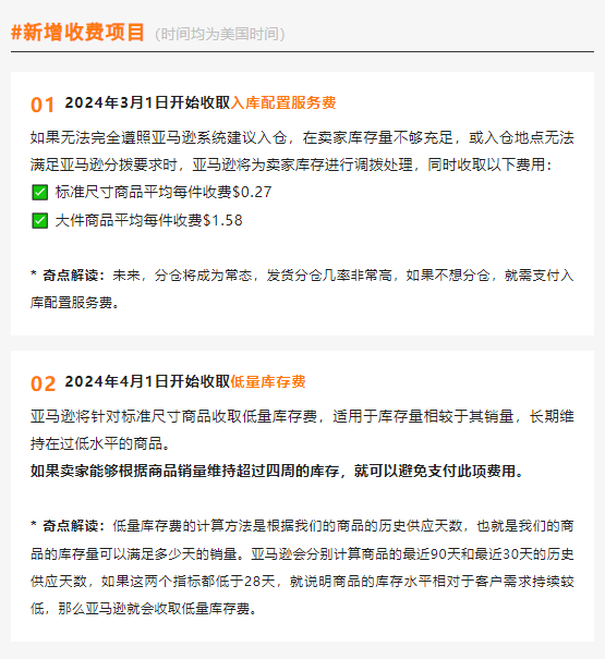 有下调当然就有上涨,亚马逊本次更新中新增了两项收费的新项目,也是卖家最关心的两项新变更。