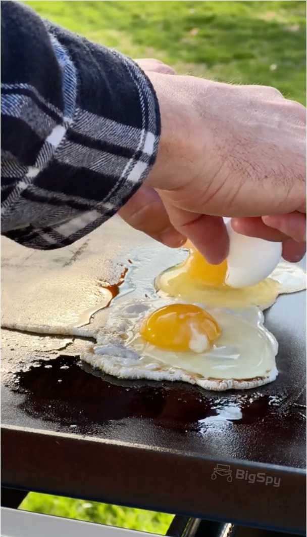 第一幕就是一个人在绿草地上用烤盘煎鸡蛋,让人知道这是在户外烧烤;视频全部的背景音都是烹饪食物过程中发出的声音,包括刮刀的刮擦声,煎鸡蛋的滋滋声,盖子与烤盘的金属碰撞声等等。ASMR形式的广告并不罕见,但厨具/户外用品用ASMR做广告,就比较新奇。