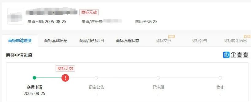 商标申请的基础信息,例如:申请人姓名、住址、商标申请注册号、商标名称、商标状态、代理机构信息等,都可以通过天眼查、企查查等平台进行查询。