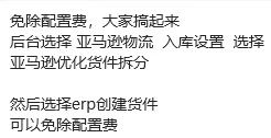 大卖圈今早在纷纷尝试,ERP刷仓。具体步骤为后台进入到入库配置,然后选择亚马逊优化货件拆分,最后进入到ERP创建货件界面,创建完毕后,预计费用是0。具体位置为截图所示。