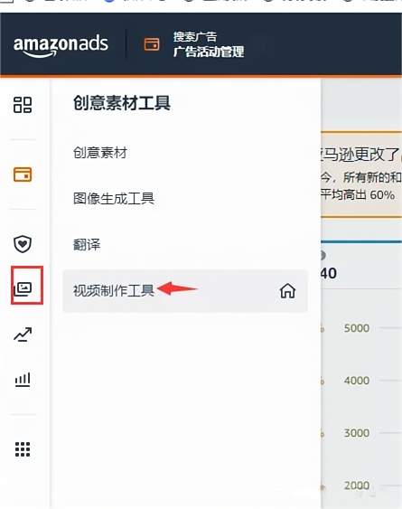 1.登录亚马逊广告帐户或注册。从创意工具菜单下的广告控制台访问视频制作工具。