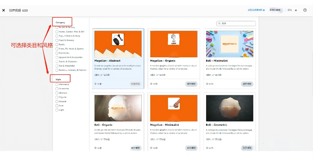 选择对应商品:Video Builder会根据所选商品提供相应的模板选项。