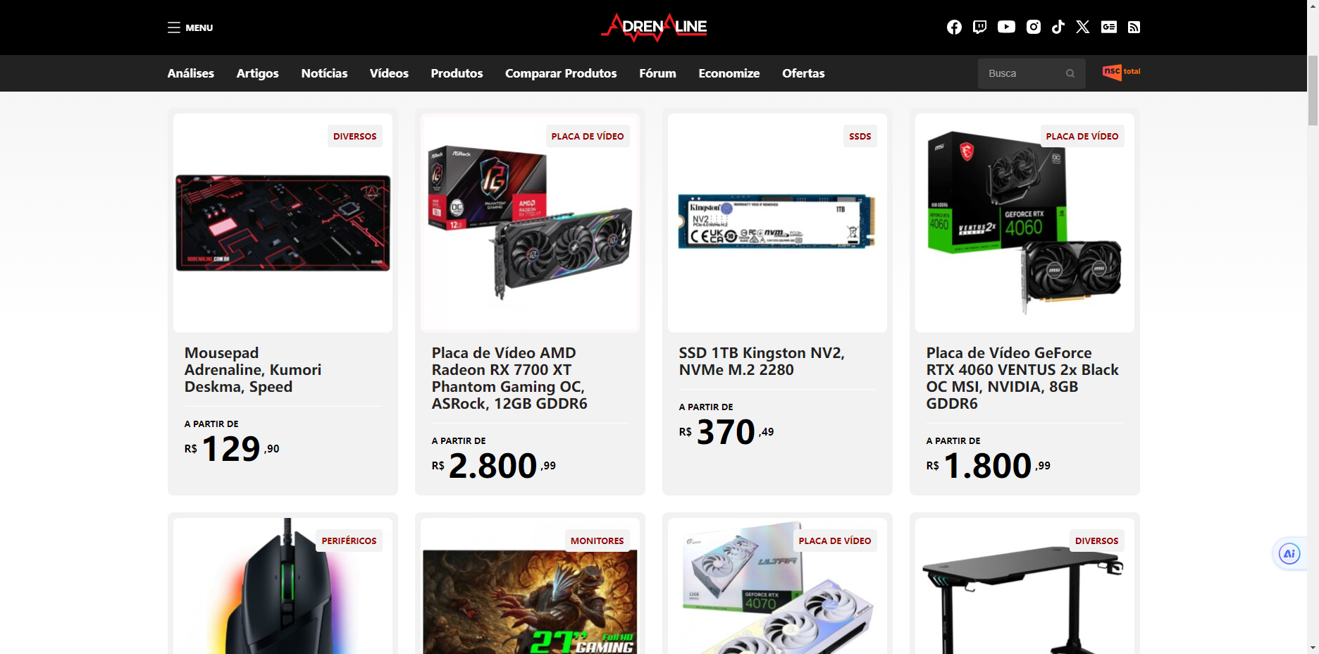 这个版块提供了硬件组件(如图形卡、主板、处理器、字体和内存)的最佳交易去处,如果用户需要购买这些商品,可以通过Adrenaline的OFERTAS公司版块来查找并购买,因为这个平台提供的商品都是经过筛选。