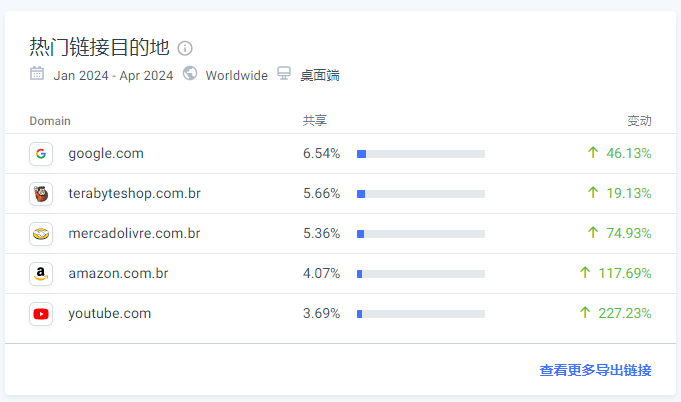 在热门出站流量排名中,Google居首位,巴西游戏网站terabyteshop位列第二,mercadolivre和亚马逊分别排在第三和第四,可见Adrenaline对于引流还是有一定的作用的。