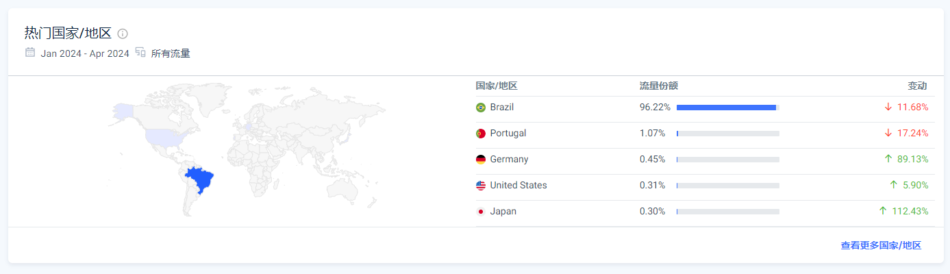 访问人数中,有96%来自巴西,展现了其对本地用户的吸引力;其次是葡萄牙,表明Adrenaline在葡语领域的影响力不可小觑。