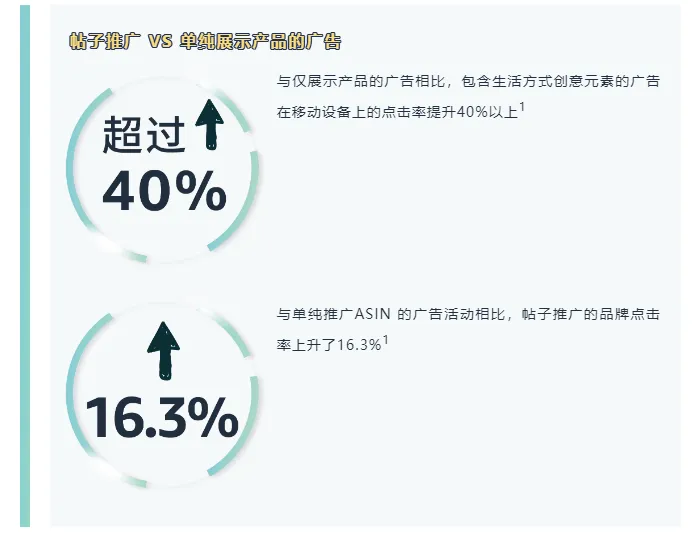 亚马逊公布过一个数据,利用Post推广和仅展示产品的广告相比,在移动设备上的点击率提升40%以上;与单纯推广ASIN 的广告活动相比,帖子推广的品牌点击率上升16.3%。由此得知,Post这个免费流量端口至关重要,是亚马逊卖家不能忽略的流量入口。