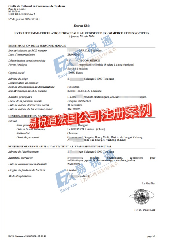 以下截图是易税通法国公司注册案例: