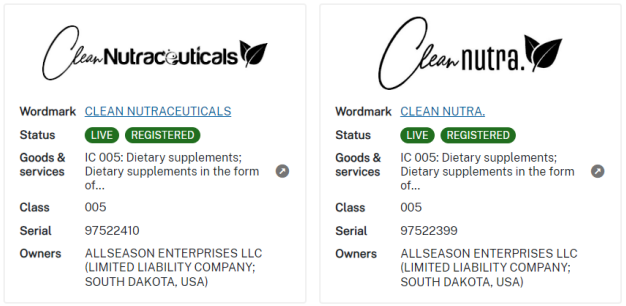 品牌方ALLSEASON ENTERPRISES, LLC专业生产和销售CLEAN NUTRA品牌的保健品,该品牌产品主要是由维生素、矿物质和植物提取物组成的补充剂。