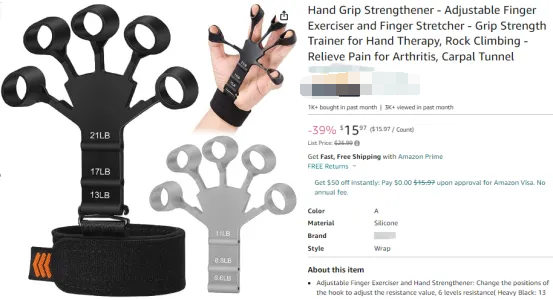 一款能够有效的锻炼手臂、手腕及指关节的手指拉伸器,共有6种力度调节档,能够适应不同臂力人群需要,深受广大健身人士的喜爱。