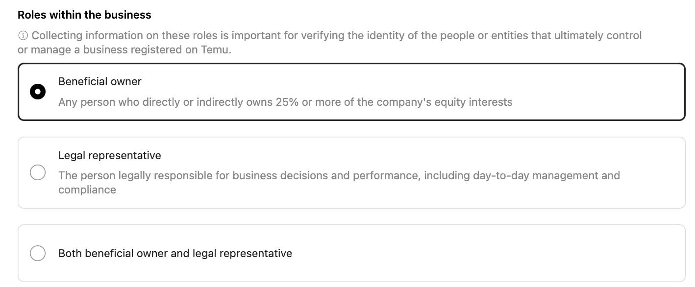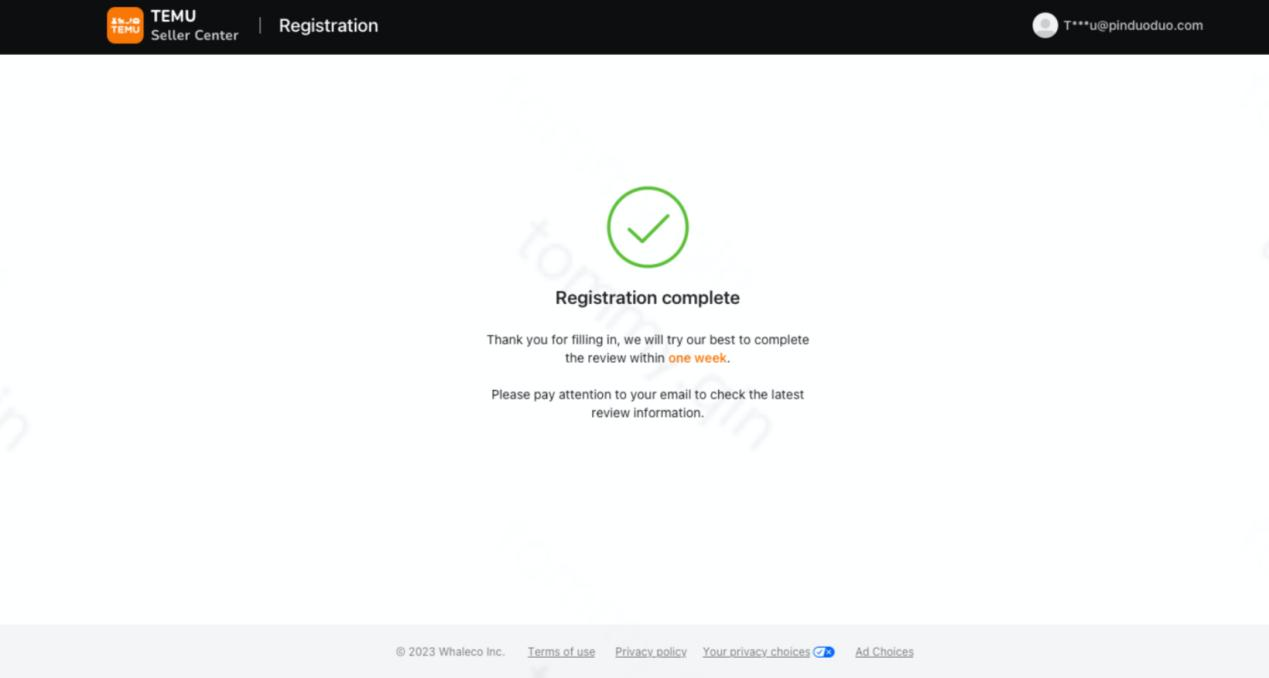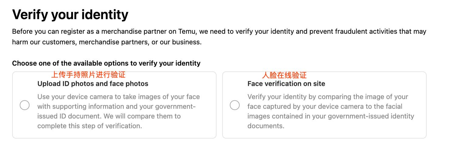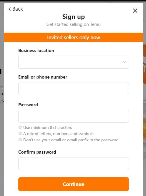 1. 完成账号注册:点击招商邀请注册链接进入注册页面,开始注册TEMU本土账号,填写相关信息,business location 处选择要入驻的公司/个人的国家(注册后不能修改,请慎重选择),进行实名认证,支持使用邮箱、手机号注册,若为手机号,必须是德/意/法/西/英中任一国手机号。