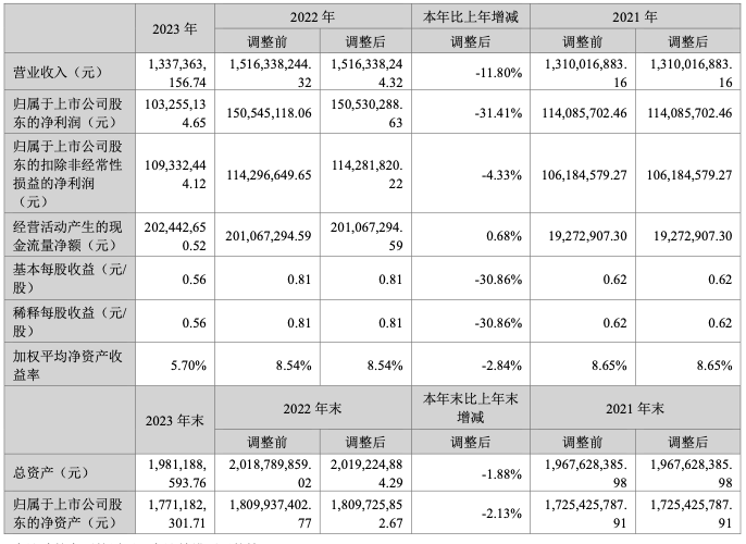 2023年,依依股份营业收入为13.37亿元,归属于上市公司股东的净利润1.03亿元。