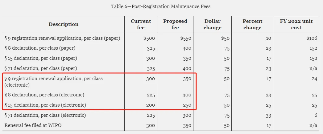 1、美国商标5-6年使用宣誓费用涨幅33%