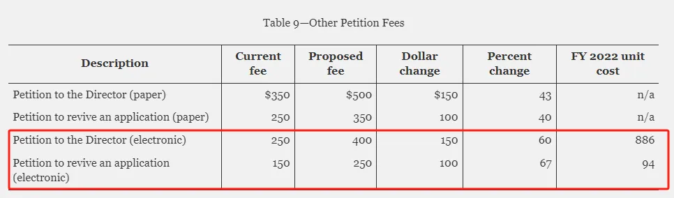 此前USPTO公布了费用调整草案,具体费用上涨情况如下: