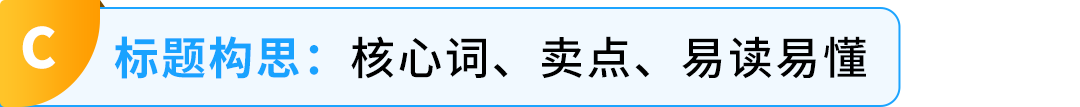 1-3 个关键词/产品定位词/消费者用来搜索产品的词语+ 材质/功能/场景等和其他同类产品形成差异化的词语。做到简洁清晰、格式分明、无词语堆砌。