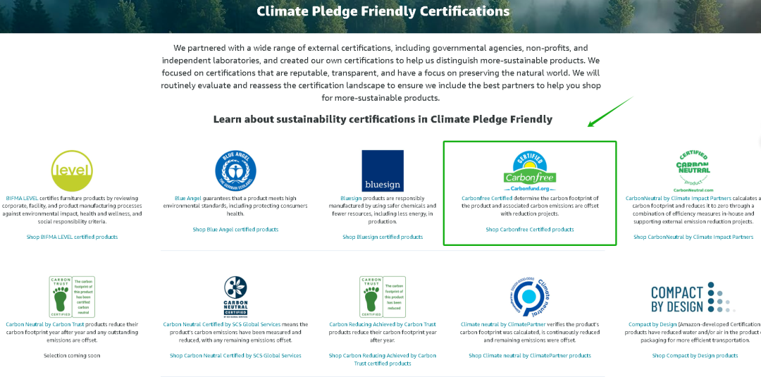 然而,你是否意识到,亚马逊平台推出的气候承诺友好认证(Climate Pledge Friendly)为你提供了一个绝佳的流量突破口?尤其是52种认证方式中的CF认证(Carbon Free)