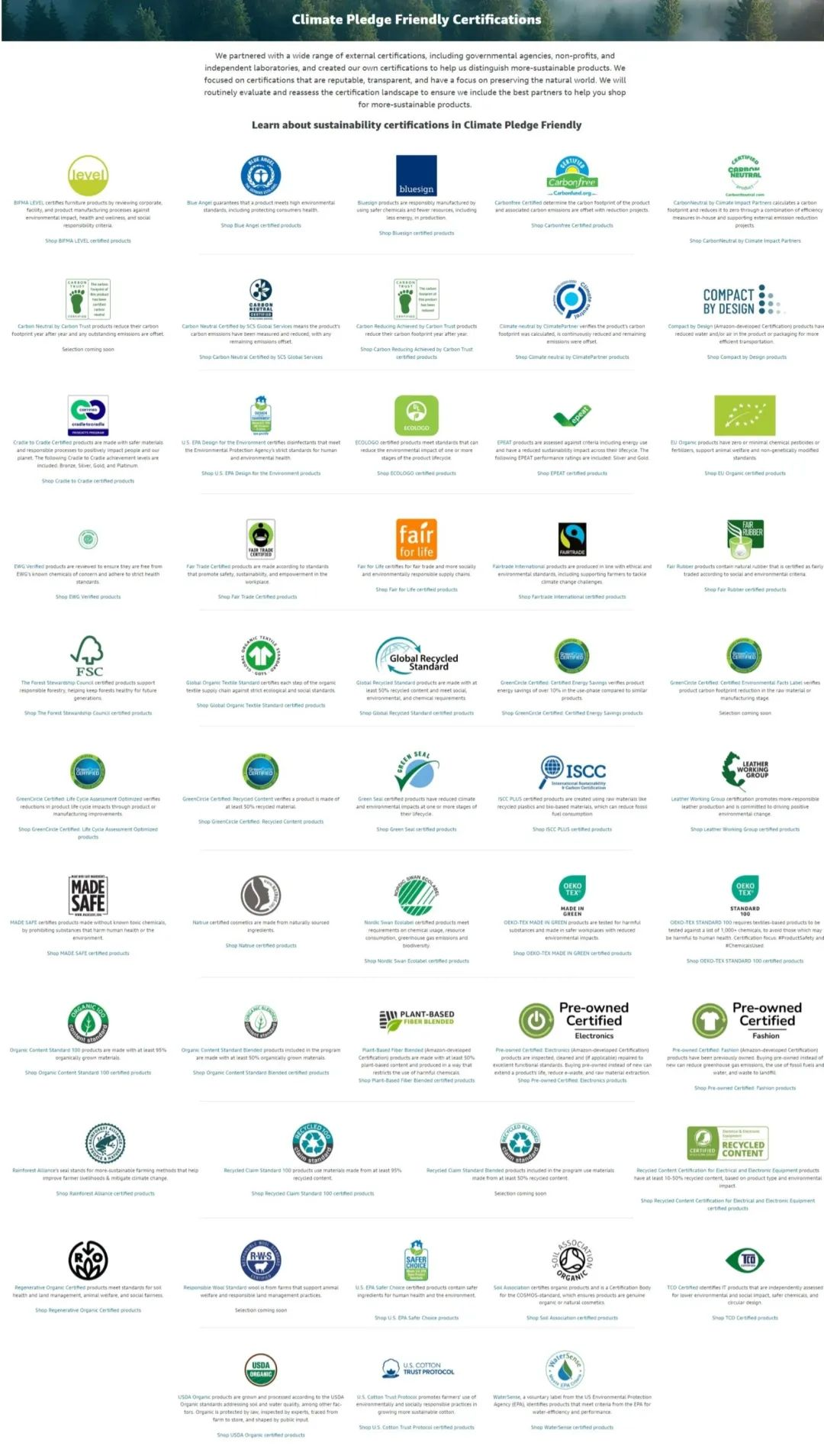 亚马逊平台为卖家提供了52种不同的气候绿标认证方案,每个认证对应不同的产品类别,几乎涵盖了所有产品类型,满足各类卖家的需求。