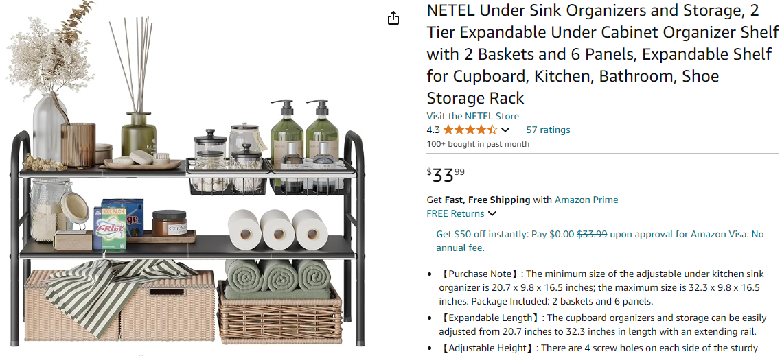 原告持有NETEL品牌,专注在亚马逊上销售各类收纳用品,此次发案主要是为旗下的可伸缩收纳架维权。