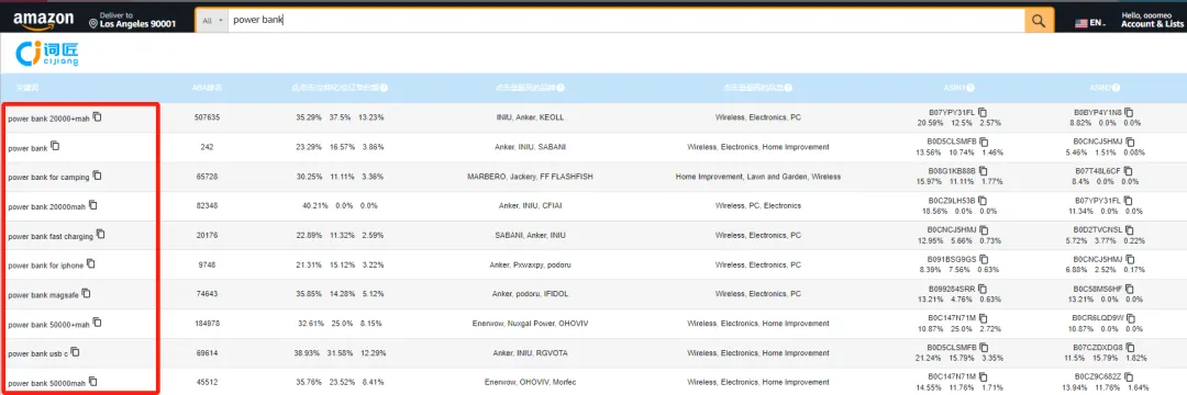 竞品ASIN采集关键词:借助现有工具的ASIN反查,将所搜集的直接竞品ASIN及相关ASIN导入,再将结果中的关键词添加到总词库中。
