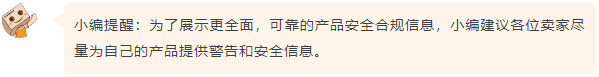 如果您的商品可能/确实需要警告和安全信息,那么您必须提供能够显示此类信息的商品安全图片或商品文件。